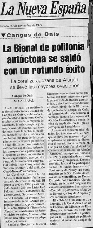 el 13 de Noviembre de 1999, en el Teatro Colón, de Cangas